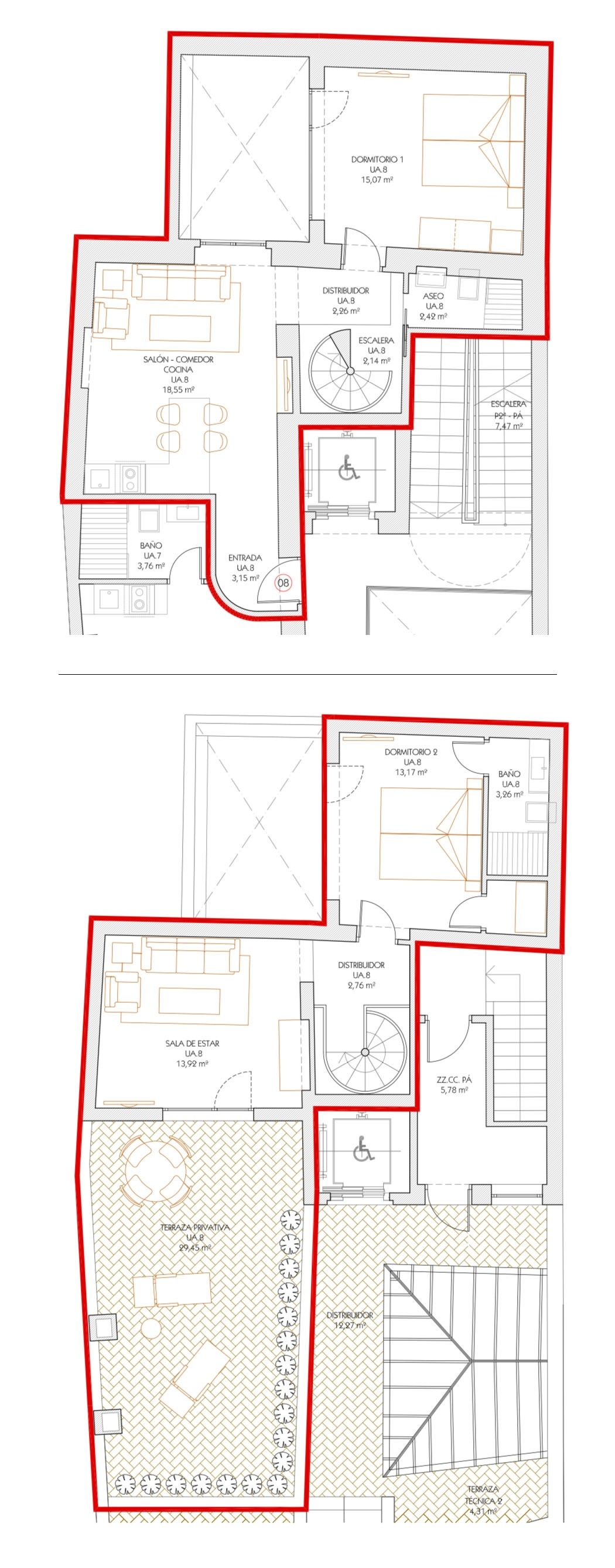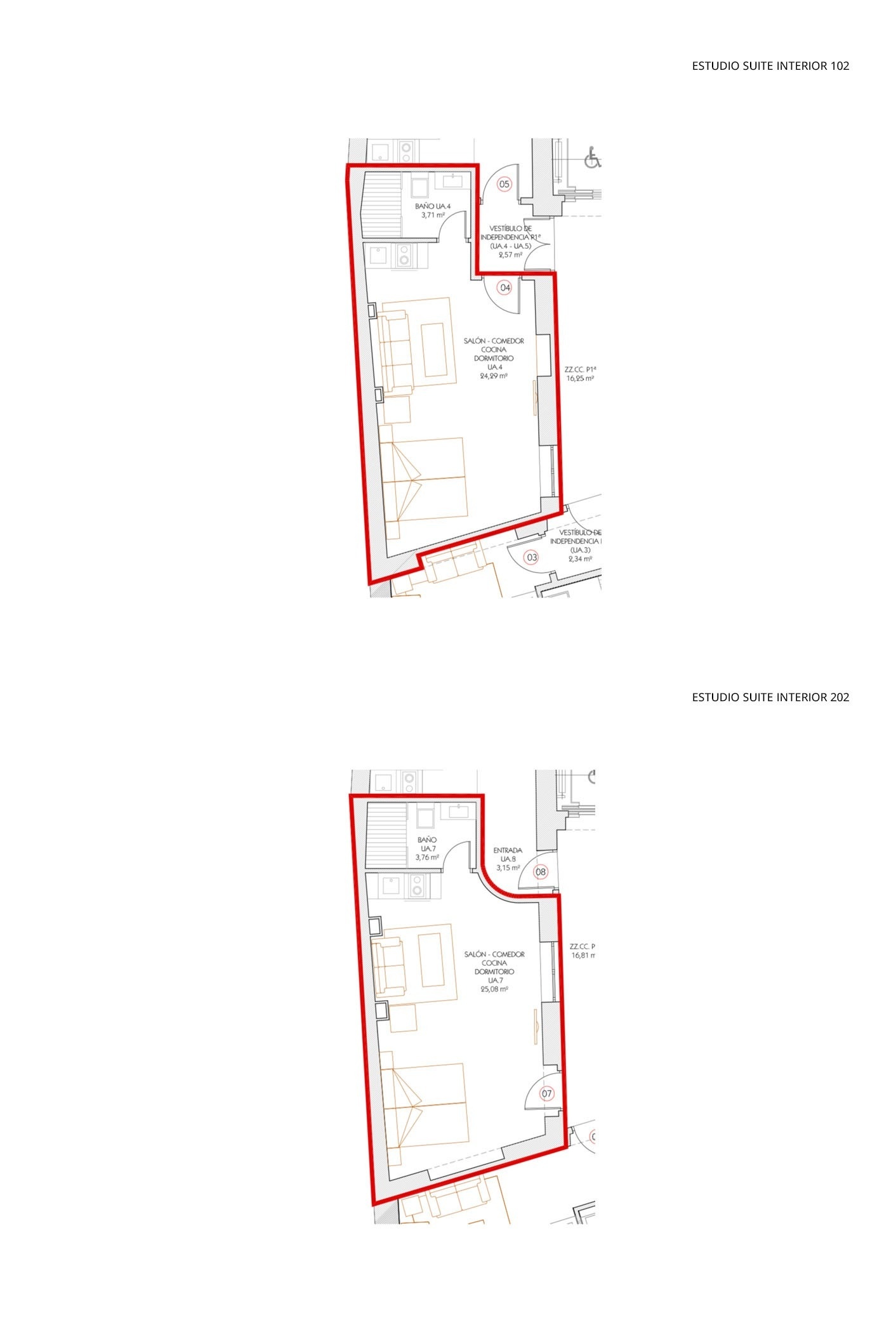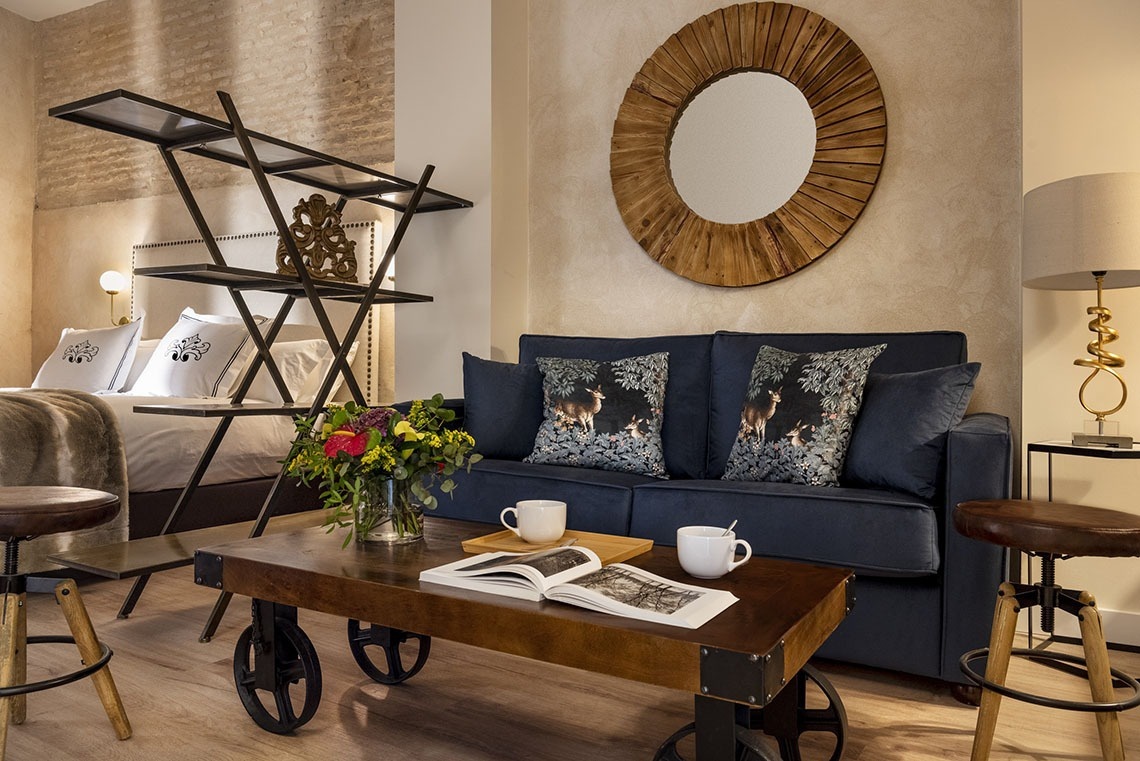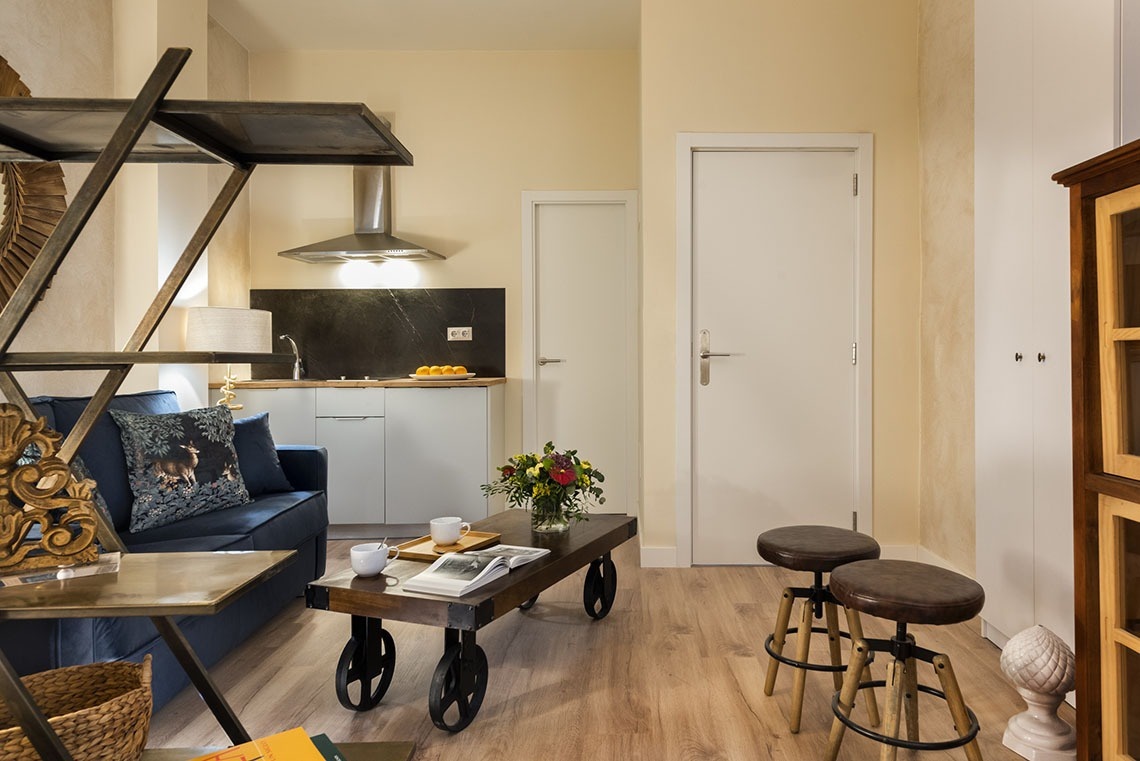 Our interior Studio, consists of a living room with sofa bed and kitchen. This apartment does not have a separate room. The bedroom is integrated into the same room, although in a separate area, and has a double bed. The bathroom is fully equipped with a shower tray.